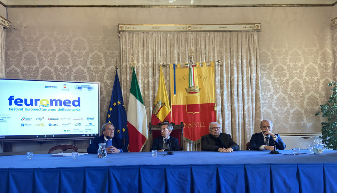 Scrivono così nel position paper i componenti dell’Advisory Board del Festival Euromediterraneo del Mediterraneo (Feuromed) in programma da domani e fino a sabato a Napoli, nello storico castello del Maschio Angioino, con oltre 60 relatori, tra cui 6 ministri, 20 amministratori delegati e i presidenti delle più importanti aziende italiane e rappresentanti delle istituzioni europee e multilaterali. A presentarlo questo pomeriggio, nella sala giunta del Comune di Napoli, il sindaco Gaetano Manfredi; Roberto Napoletano, direttore del Quotidiano del Sud-l’Altra Voce dell’Italia e del Festival Euromediterraneo dell’Economia; Patrizio Bianchi, presidente dell’Advisory Board del Festival; Antonio Parenti, direttore della Rappresentanza in Italia della Commissione europea.